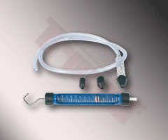 Merač tesnosti s manometrom, gumená hadica, adaptéry pre benzínové motory 5 ks, adaptéry pre naftové motory 7 ks, redukcia M12 / rýchlospojka pre adaptéry kompresiometrov, plastový kufrík